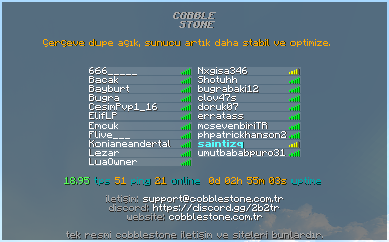 Şu anlık Kapasite: 150 oyuncu